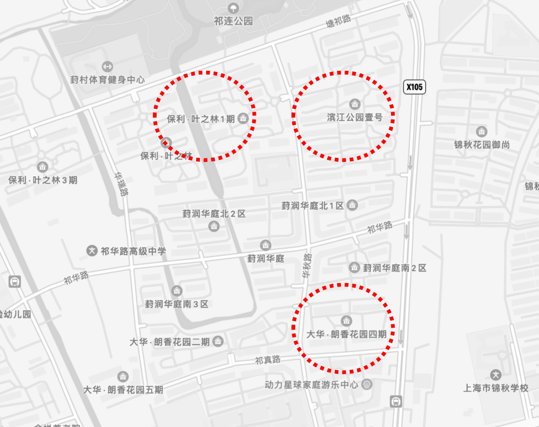 首先,這家中介門店位於**寶山上大,**周邊一共有有三個次新小區: