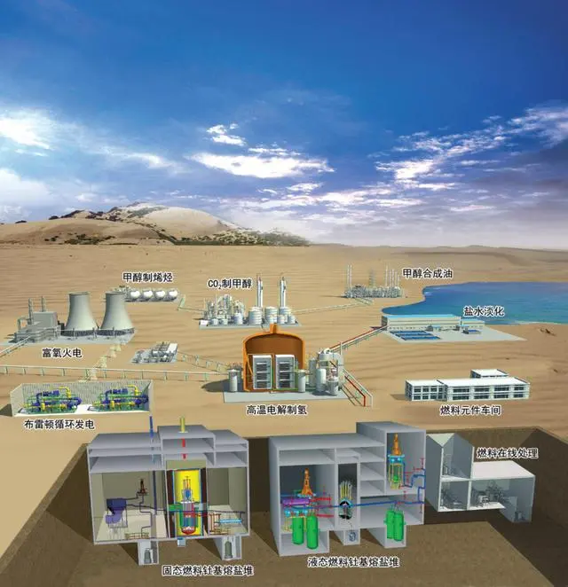 “釷基熔鹽核反應堆”,指的是利用“釷”作為核燃料,依靠“複合型氟化鹽”作為冷卻劑,進行核裂變提供能量的反應堆,被認為是人類在實現可控核聚變之前的能源終極解決方案。為何這麼説呢?釷基熔鹽反應堆是一種使用液態燃料和高温熔鹽冷卻劑的先進核技術,與傳統鈾反應堆相比,它有更高的安全性、更少的廢料和更高的燃料效率。它也不需要用水來冷卻,因此可以在沙漠等地區建造核電站。釷是一種儲量豐富的元素,比鈾更安全、更環保。
