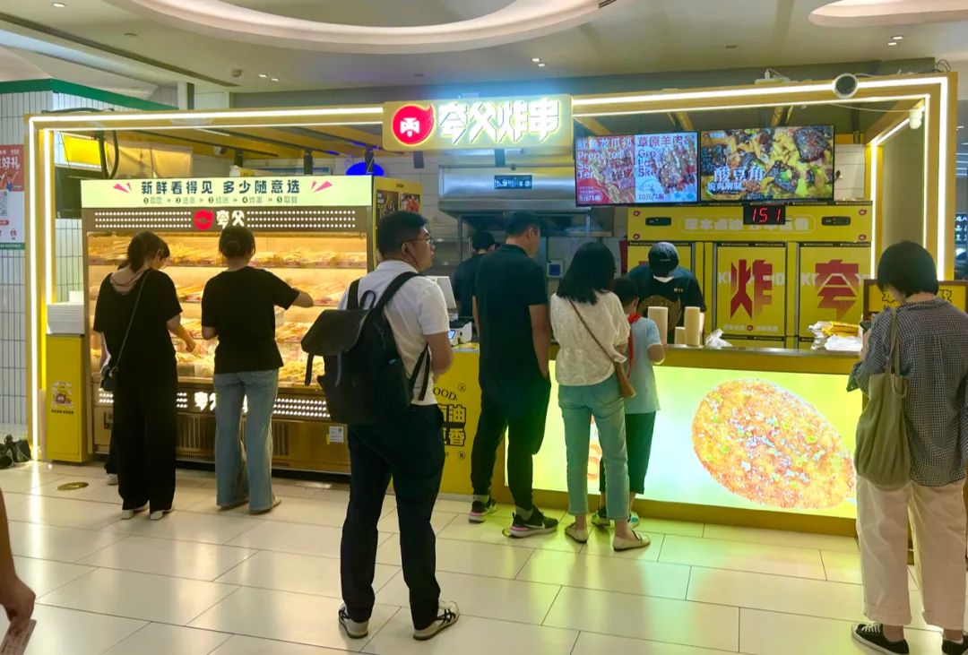 在他的夸父炸串開業後的很多個瞬間,他都感嘆自己是幸運的,比如同一商場內,稱得上競品的品牌都在他之後才入駐,而他已經搶先一步穩定了這一帶的炸串客人。他可以通過客人拿筐的熟練程度判斷誰是熟客,其中有百分之七十都輕車熟路。