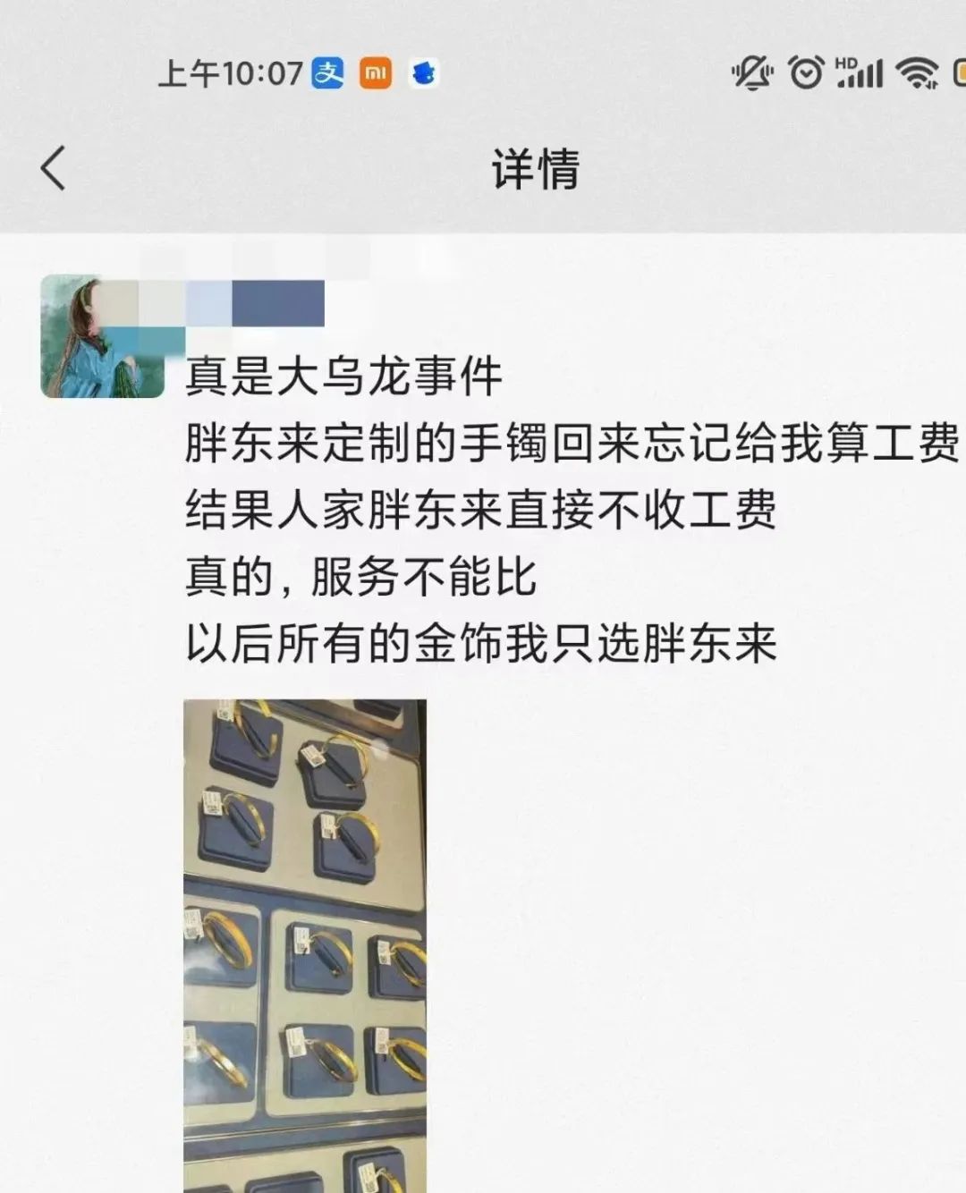 相比於胖東來黃金的物美價廉,其他黃金品牌店多少就顯得有些誠意不足了,加工費昂貴、舊金置換麻煩,這讓無數本地消費者在選擇黃金的時候首選的就是胖東來。