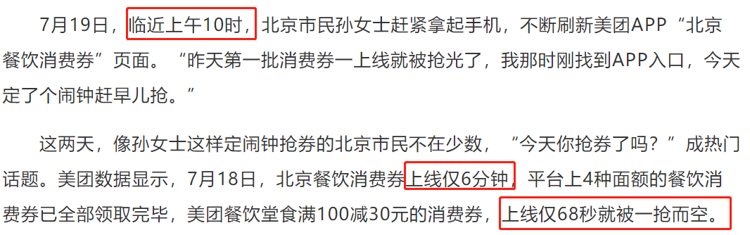 好消息是,仍然有足夠多的熱心賬號迅速把消費券一掃而空,壞消息是,羣眾搶到的額度可能不如黃牛的一半,最後被過濾掉的,還是廣大真正有消費需求的普通人。