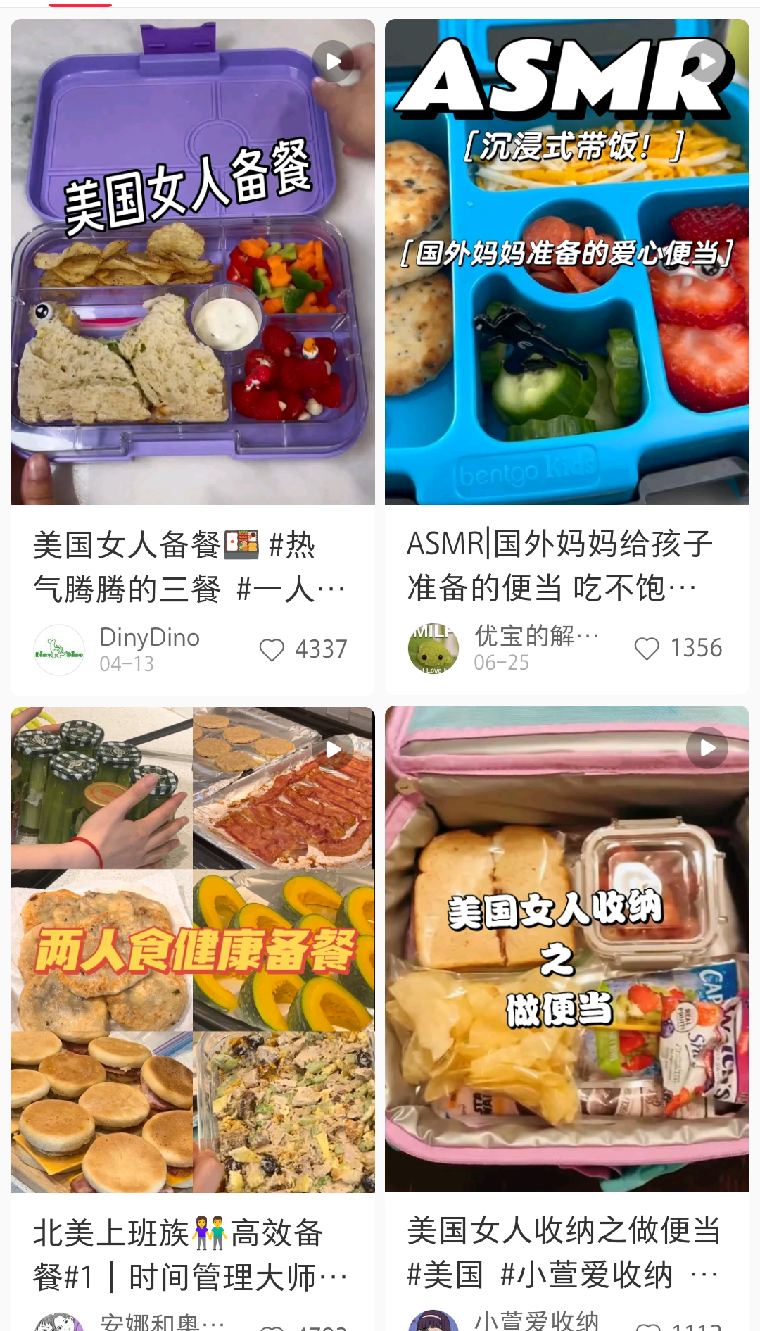 還有很火的美國女人備餐系列。她把少到不能再少的食材分裝進飯盒,向大家展示自己準備午飯的過程。