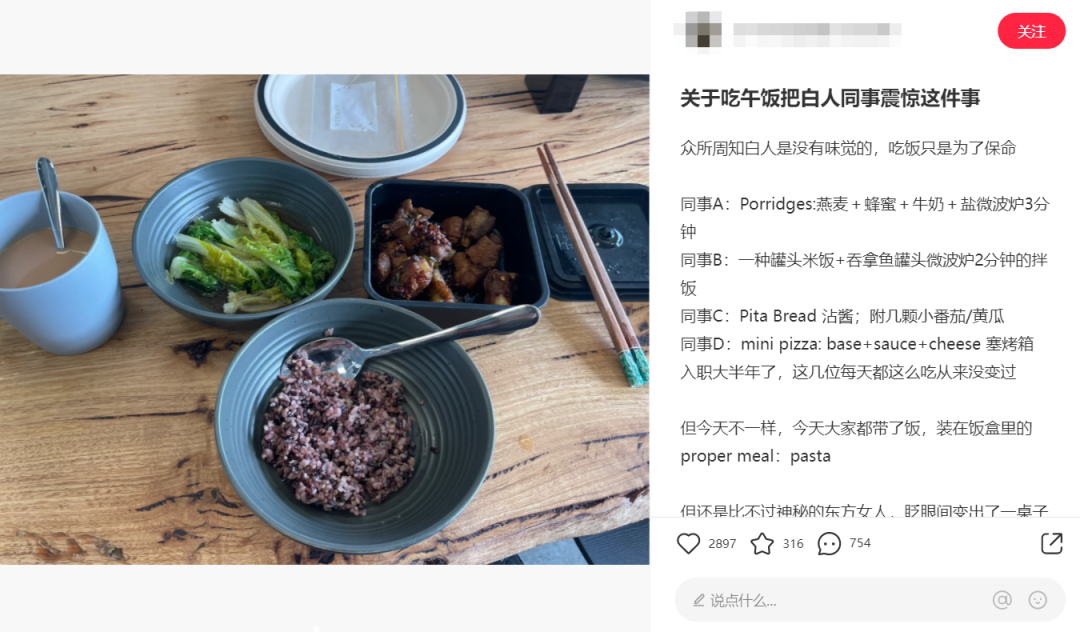有網友總結,他們把白人飯當“午飯聖經”,只不過是時刻提醒自己,這是來上班而不是享受生活的。頗有下凡來渡劫的感覺。