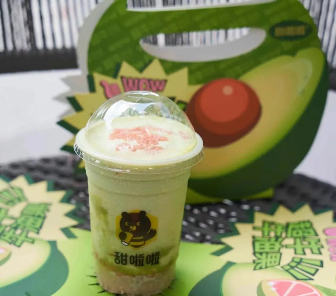 比如最近,甜啦啦上新的超牛牛油果產品,每一杯都有半顆墨西哥牛油果,還復配了西米、紅柚粒等小料,一杯的售價只有12元。