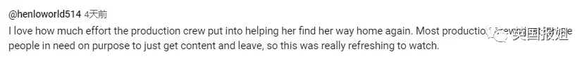 很多製作團隊都會忽略有需要的人,從他們身上獲取到想要的內容之後就會離開,看到這些幫助奶奶的記者們真的很驚喜。”