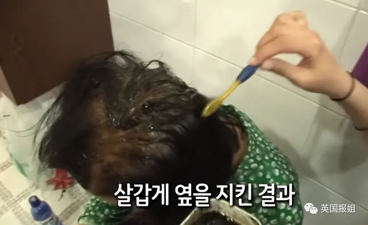 記者們一路跟着她,只見她慢慢又走進了一個商場的女廁所,嫺熟地把東西放在洗手枱上,打開其中一個水龍頭,然後…又開始洗頭!