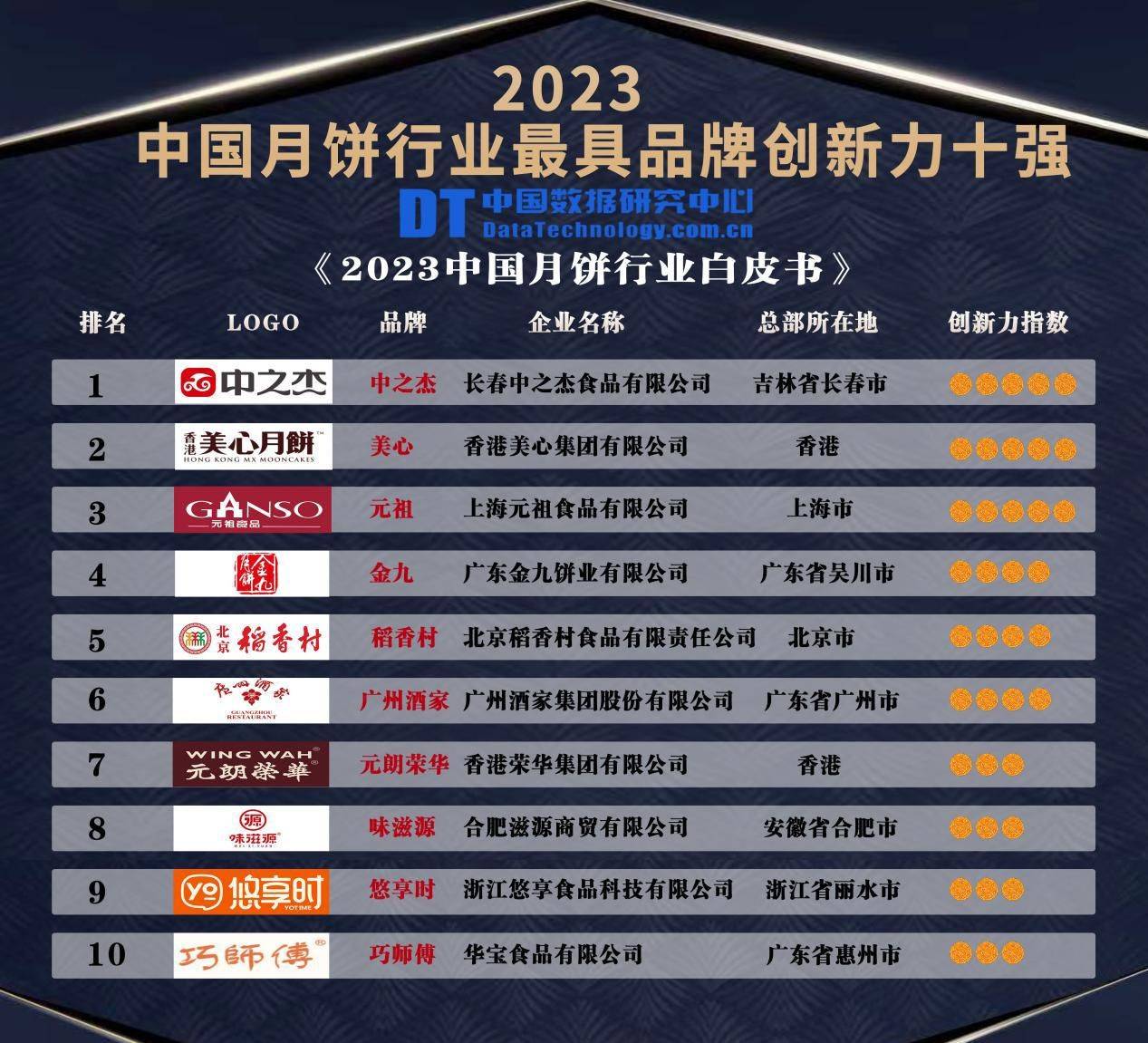 2023年9月18日,中國數據研究中心發佈“2023中國月餅行業最具品牌創新力十強榜”,中之傑躋身榜單第一名,與其一同上榜的還有美心、元祖、廣州酒家等知名月餅品牌。