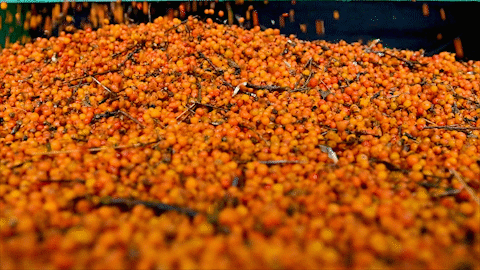 第二天,將沙棘粒取下來,接着把它洗乾淨,放到榨汁機裏,加點水稀釋,再按照個人喜好添加蜂蜜或白糖。