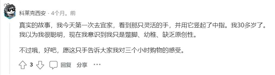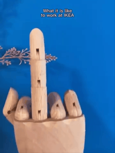 社交媒體上,有多少顧客曾對宜家木頭手的中指姿態發出過疑問——相應地,就會有多少顧客po出自己剛剛完成的宜家中指傑作耀武揚威。