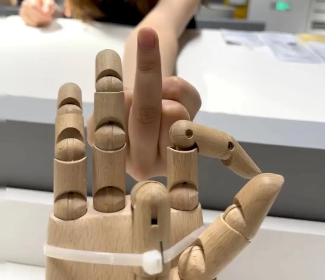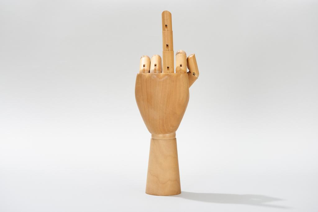 你能想象到每一個把木頭手中指掰起來的人,TA可能想表達叛逆、宣泄糟糕的心情,又或者只是想要把身邊的人逗樂——好吧,這就是一種下意識的慣性決定。