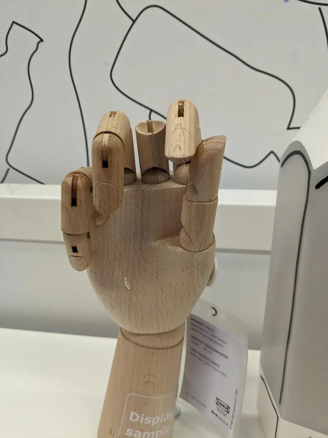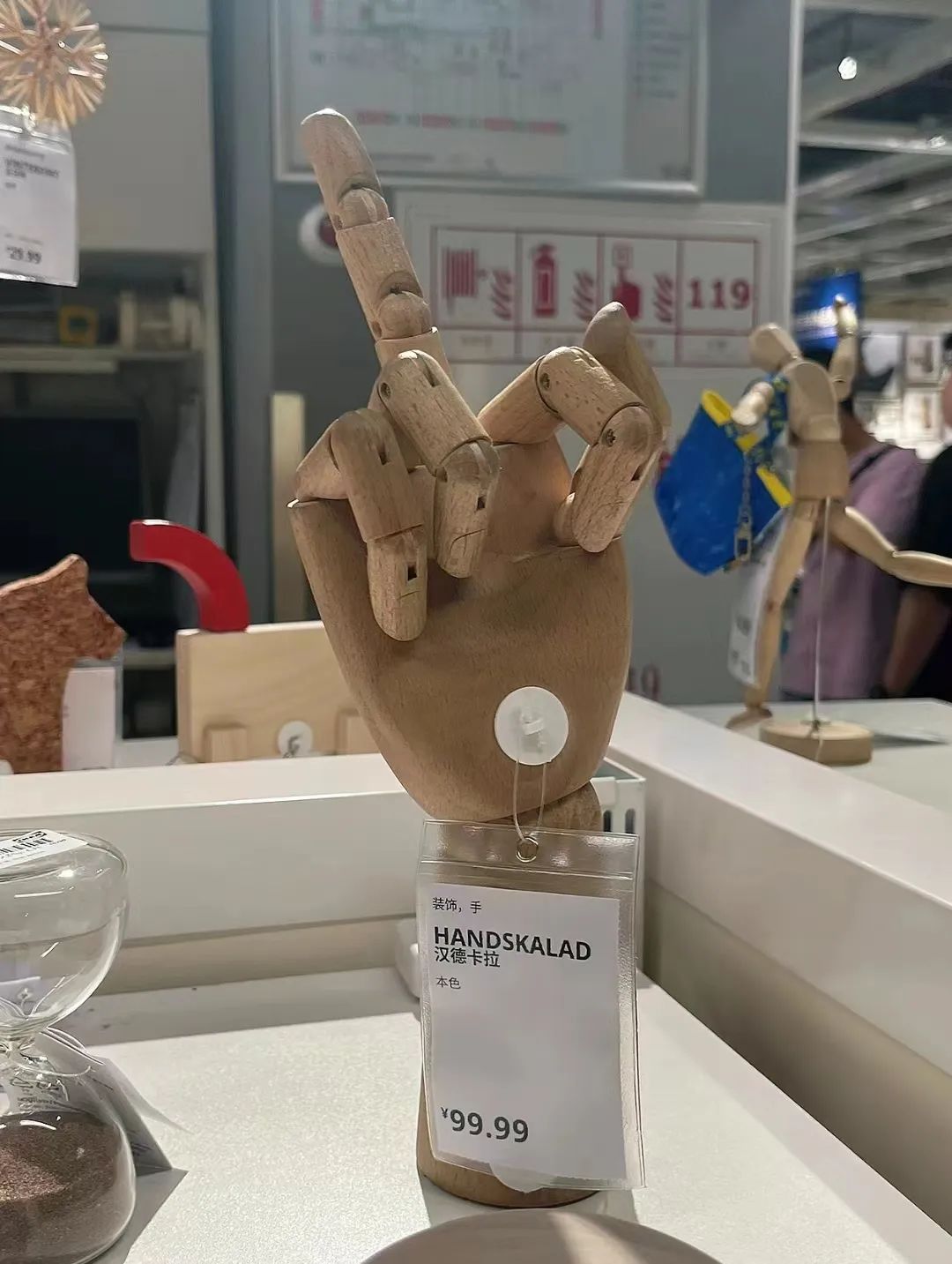 宜家的木質手部模型官方名稱為“漢德卡拉(HANDSKALAD)”,作為這家家居巨頭的拳頭產品之一,它已經在世界範圍內風靡了多年,並且有了多個版本。