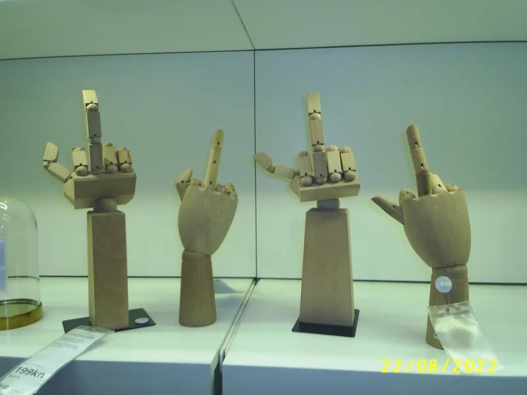在宜家,豎着中指的木頭手是如此之多,多到能讓每個初登寶地的人誤以為它們的出廠設置即是如此,而其背後的光明會勢力正試圖藉此結陣召喚某種神秘力量。