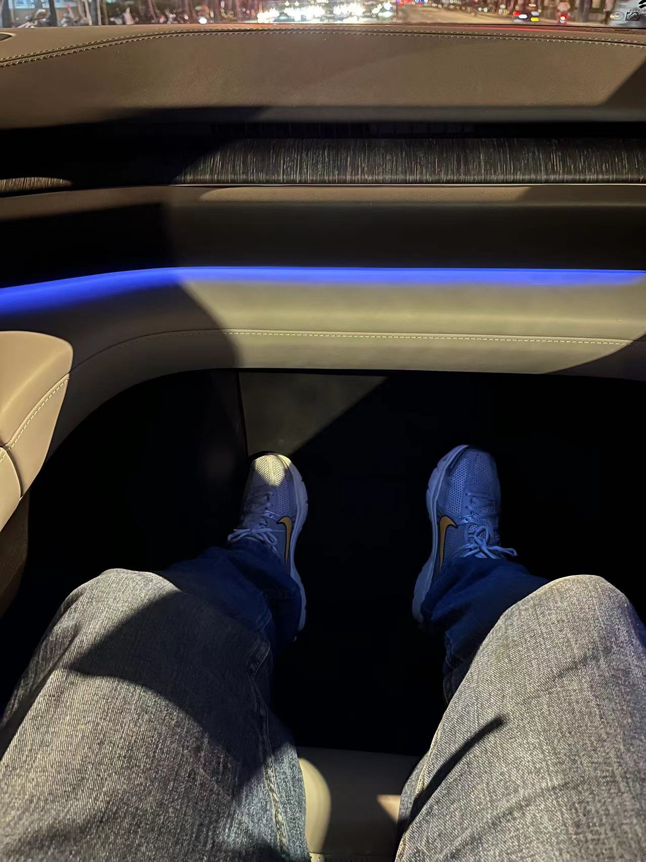 副駕的腿部空間很大,在我能把腿差不多伸直時夫人在後排依然有腿部兩拳的空間