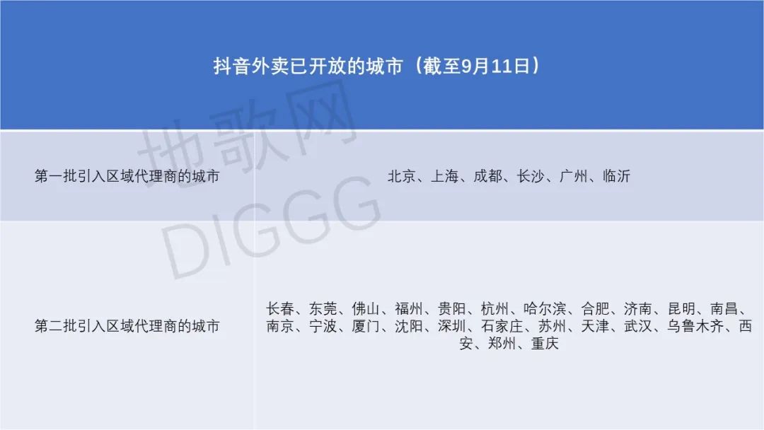 而現在,第一波試水之後,抖音外賣正在覆蓋更多城市。