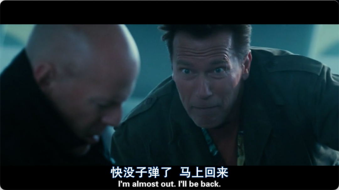 所以,你也能看到布魯斯·威利斯用《終結者》的經典台詞吐槽施瓦辛格: