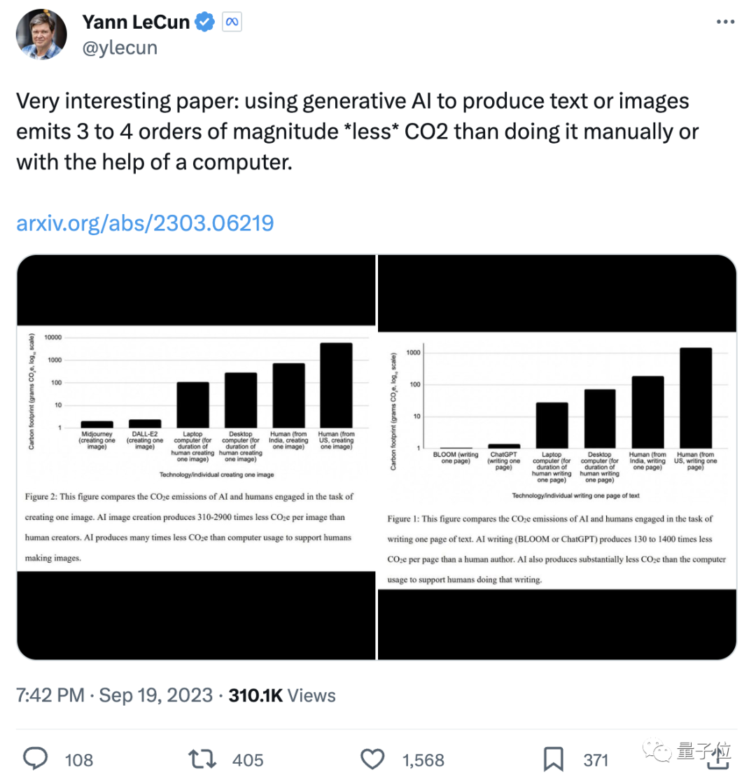 研究稱AI繪畫碳排放僅為人類畫家1/2900,LeCun轉發_風聞