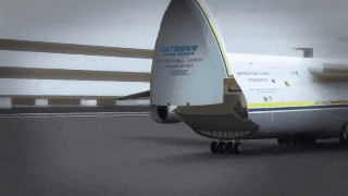 除了安東諾夫的大型貨機,機頭艙門可以向上打開的貨運飛機還有波音747、洛克希德C-5銀河和空客白鯨等。