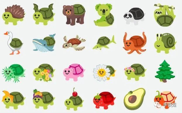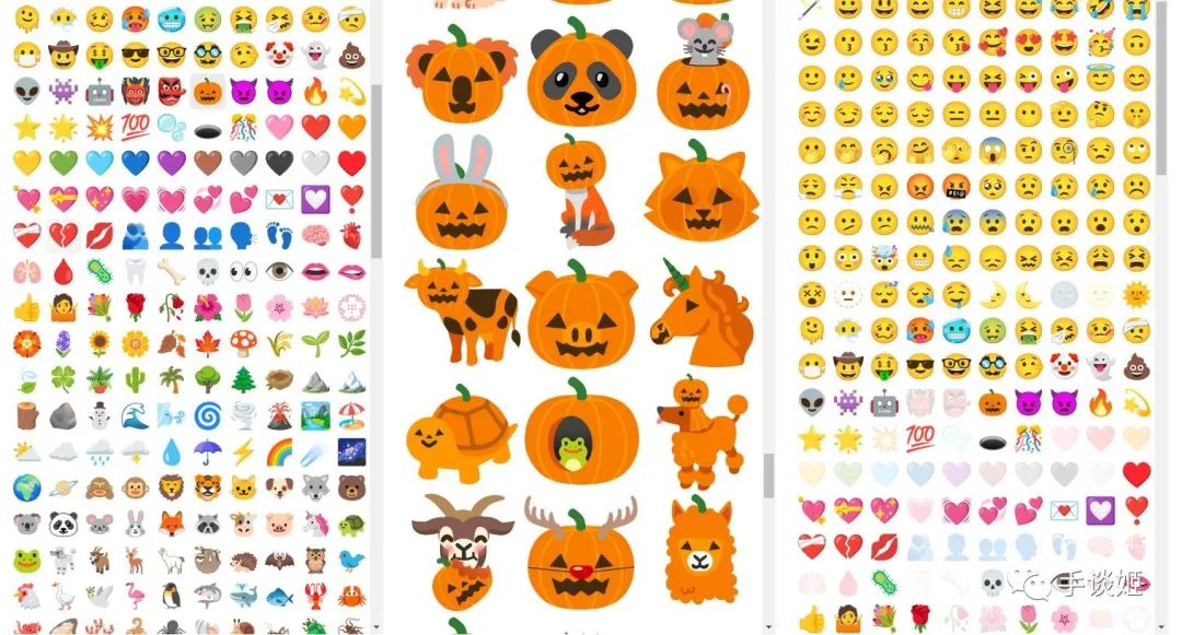 這類創意執行的最令人佩服的地方,是需要儘可能列舉出所有的組合可能性來。想當年上中學的時候姬就對數列題吃不消,比如從(A1,B1)給例舉到(A1,B10),有種小孩子掰着指頭數數的感覺,很考驗耐心,而一旦Emoji Kitchen展示出來,就有種浩瀚工程的美感,讓人感受到Emoji創意組真的很閒。