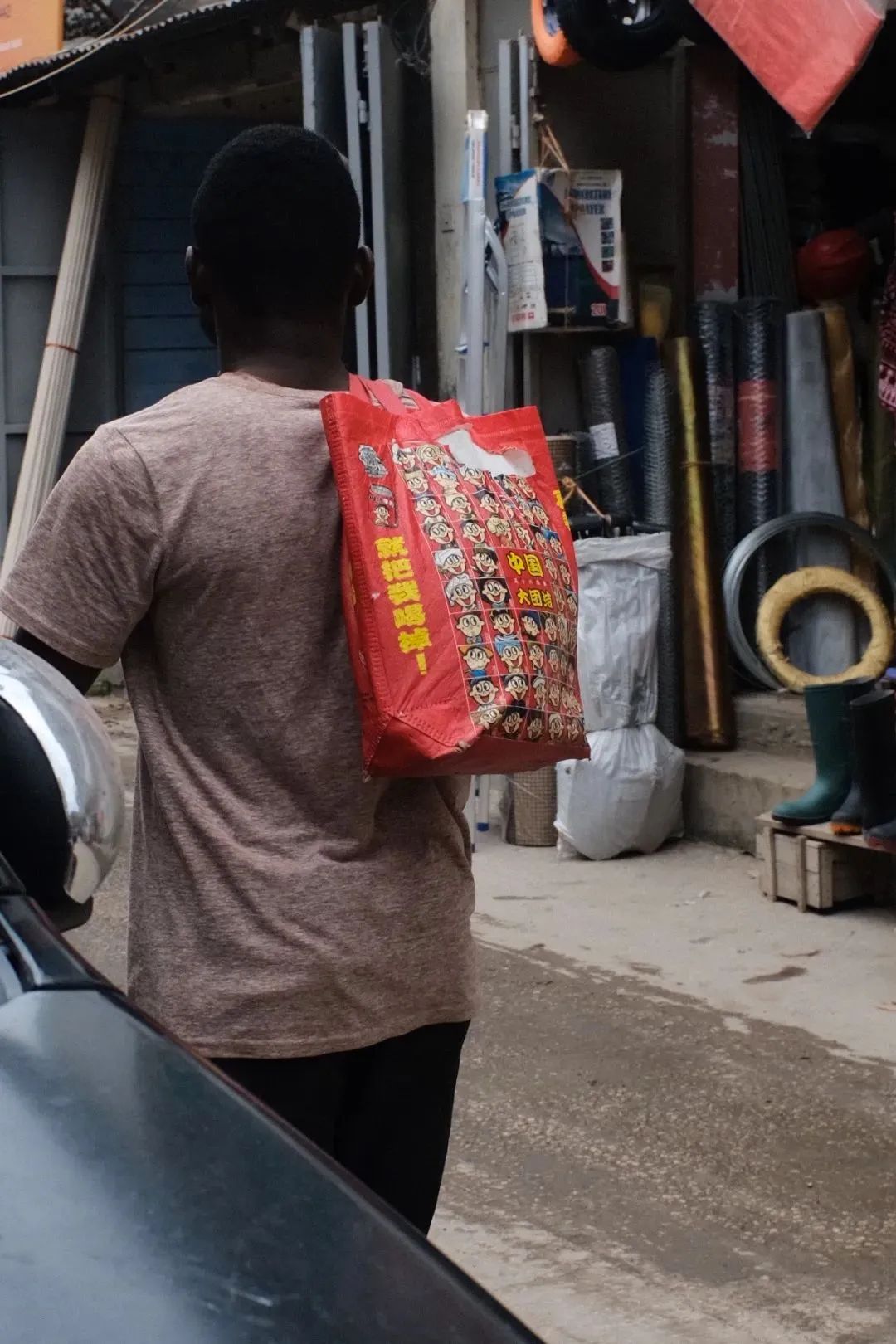 毫不誇張的説,你可以在非洲的街頭用中國手提袋拼出一道彩虹。