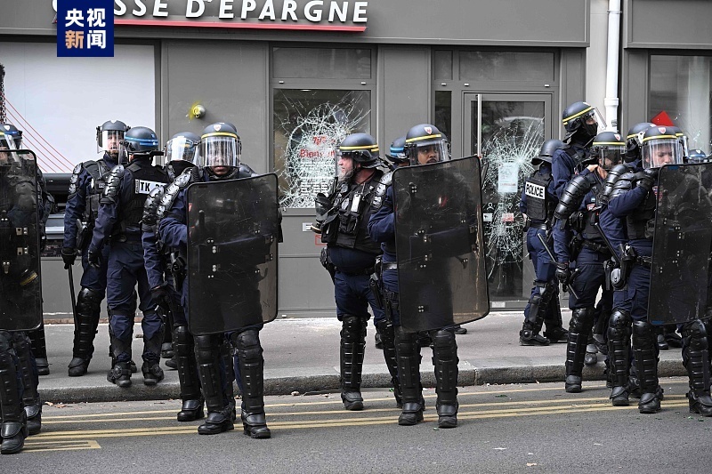 在法國首都巴黎,遊行隊伍下午3點左右從北站平靜出發後,隨後一個由數百名蒙面男子組成的隊伍破壞了銀行機構的櫥窗,並向一輛警車投擲石塊。巴黎警察局稱,這輛汽車遭到“鐵棍”的打擊。車上一名警察手持武器下車,以便與示威者保持距離。一支摩托車警察部隊隨後趕來,阻止了破壞行為並保護了車上的警察。