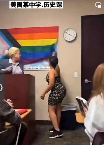 前不久,一位美國黑人母親衝進課堂,撕掉張貼在美國地圖上的彩虹旗,怒斥那個不男不女的老師:“我花錢送孩子來上課,你就教他這些東西?我把孩子教育成男子漢,你卻讓他變成女人?你上的是歷史課,卻教這些狗屁”?