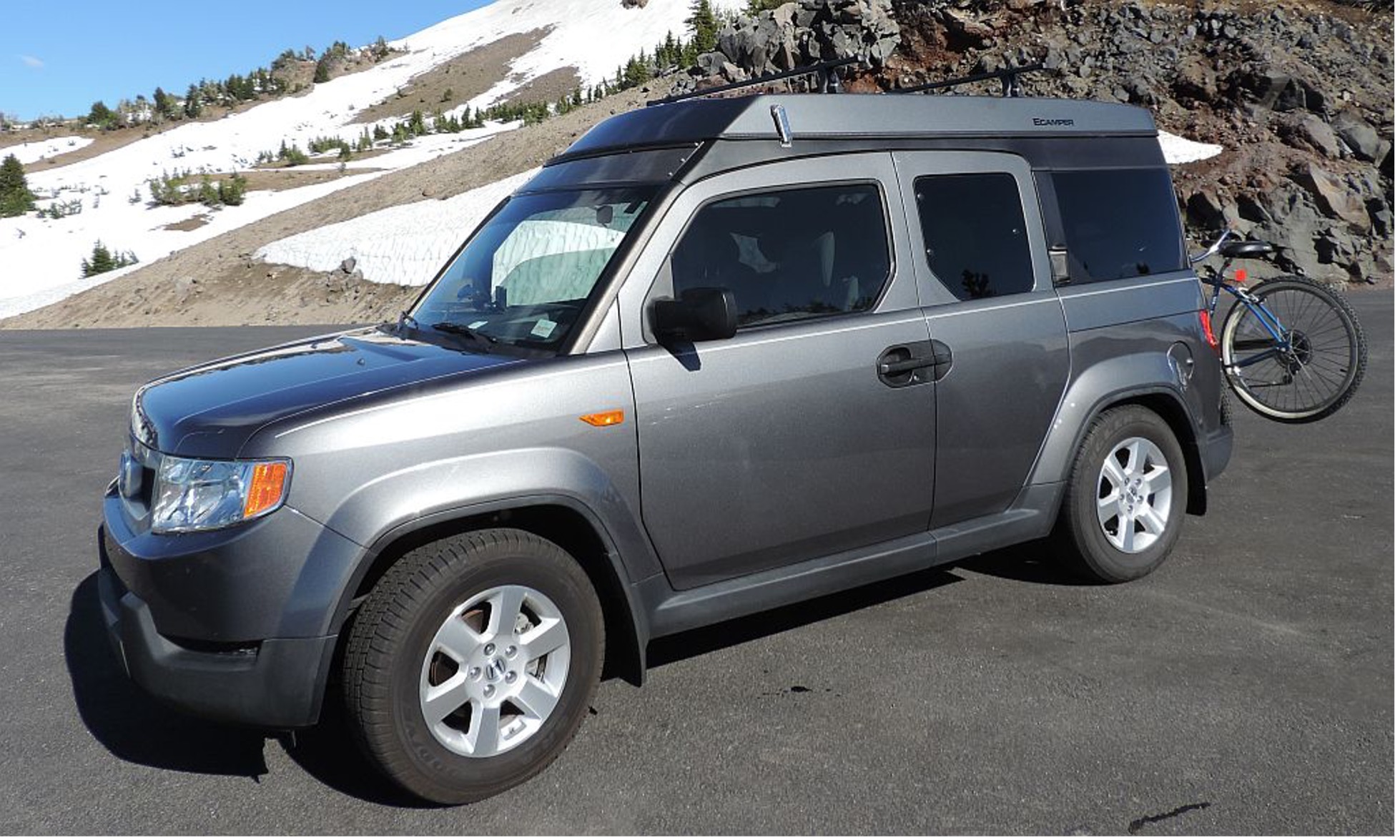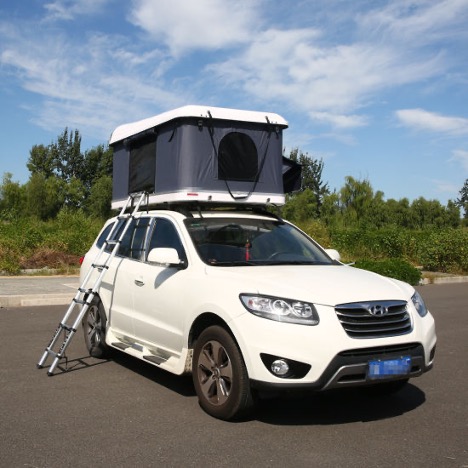 另一個辦法是預置車頂承力架,可以掛接帳篷模塊。出行的時候裝上去,開車的時候收起來,就像一個扁盒子,阻力小,也不礙事。睡覺的時候撐起來。優點和一體式的車頂帳篷一樣,還不影響結構剛性,對車輛的改動最小;缺點是一般需要從車外上下,需要架梯子爬上爬下。車內如果用可打開的大天窗,也可以鑽上鑽下。