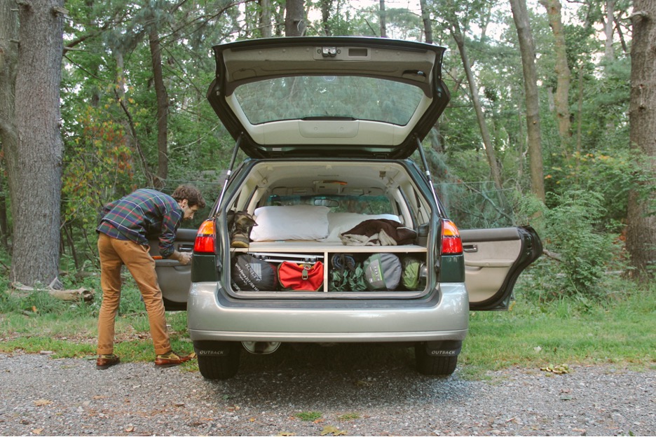 只要在設計時有所考慮,後排座位翻倒時和後背地板齊平是做得到的。這樣就形成了一個平整的空間,鋪開睡袋,將就睡幾個晚上是可以做到的。更加講究一點,放上尺寸配好的充氣墊,就齊活了。