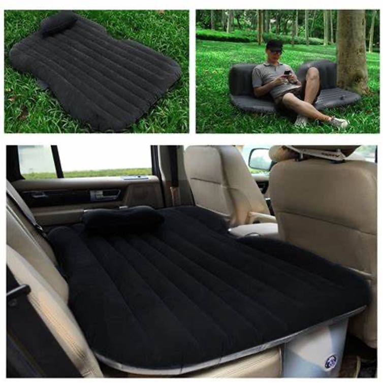 要是後座無法放平,還有一個辦法是橫跨後座的充氣墊。這要個子小才行,否則就需要佝僂起來了。 特別適合小孩子。