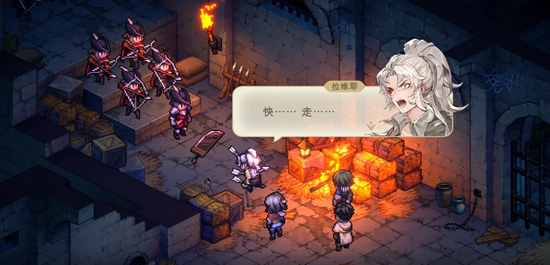 比如在遊戲開場劇情中,白毛大姐頭拉維耶一腳踢開地牢大門,一邊喝酒一邊扛着她的巨型大刀來拯救玩家。在後續面對伏擊時,她則乾脆地做出犧牲,掩護同伴撤退。你一下就能記住她那爽朗豪邁的英雄特質。