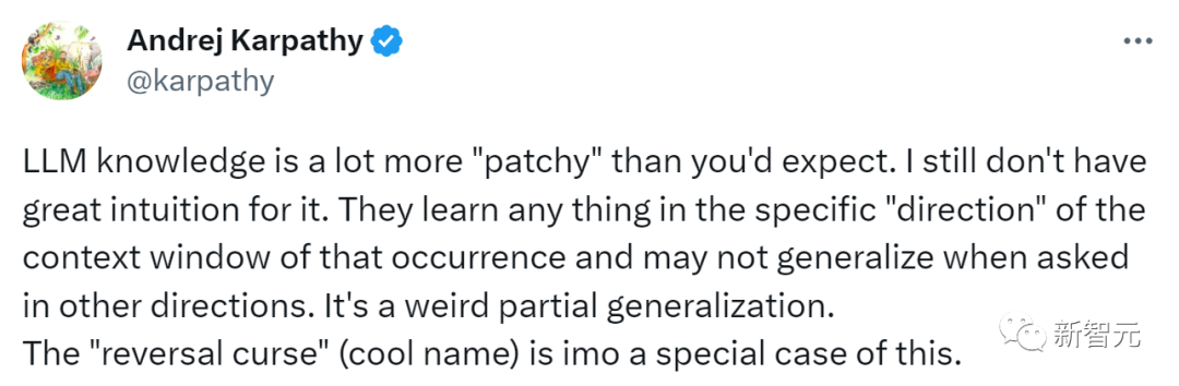 OpenAI科學家Karpathy轉發並評論道:大語言模型的知識比你想象得要零碎得多。