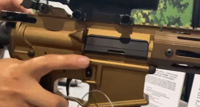 在展會現場,我們可以看到多種顏色的XT112步槍,其中不乏歐美公司所喜歡的FDE與金色搭配款式。從機匣外形上我們不難看出這款步槍的設計主要源自美國的AR15系列步槍,但和它的前輩T91步槍一樣沒有在側面加裝AR系列步槍較為常見的輔助推機柄,不知是否代表改槍的內部結構依舊沿用T91系列。