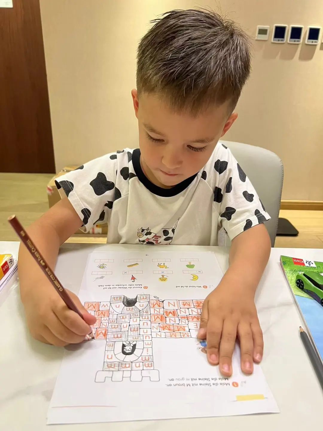 其實我內心裏是一個對孩子學業非常佛系的家長,也並不想過早地強調學習,但是看到他們父子倆快快樂樂地一起讀書寫字,似乎這也是一個不錯的親子活動,我便隨他去了。
