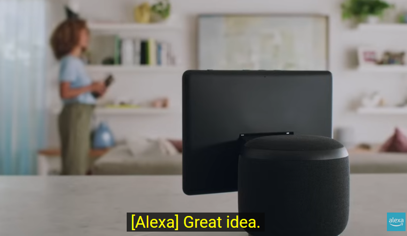 在一條演示廣告中,用户和Alexa進入聊天模式。用户想要舉辦一場派對,讓Alexa推薦派對主題,然後再依據主題推薦合適的場地。當用户和Alexa商量好一切之後,用户要求“給我的朋友發送下週五晚上8點的邀請郵件嗎,神秘一些”,Alexa便欣然答應,並閲讀以“你準備好度過一個難忘的夜晚了嗎”開頭的郵件給用户確認。