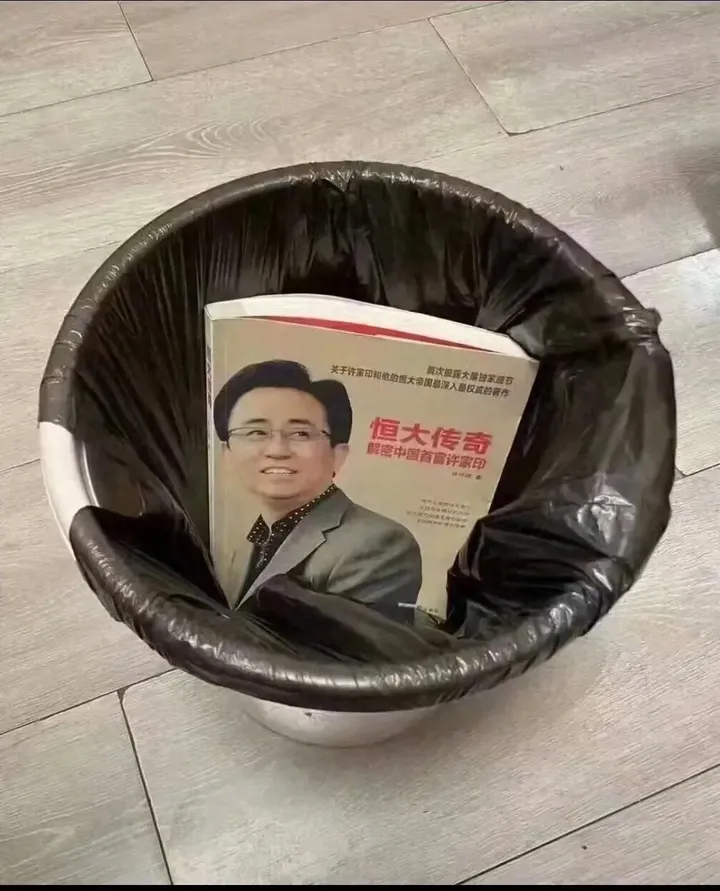 網絡上出現一張圖,一本《恒大傳奇》被扔進垃圾堆裏。