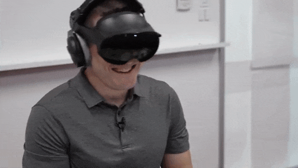 兩人在訪談中都佩戴着Meta Quest Pro VR頭顯。可能是因為視野裏的效果太過真實,Lex一度像個好奇寶寶,除了咧嘴“傻笑”,就是不停感嘆:“我在哪兒?Mark真的是你嗎?這太棒了!你不介意我離你太近吧?”