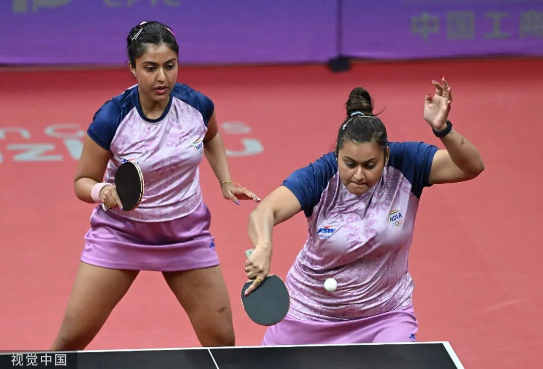 説幾句印度女隊。這幾年印度乒乓球的實力其實提升的比較快。印度男隊還是實力路線,相比之下印度女隊彎道超車的更多。無論是印度一姐,反手長膠的巴特拉,還是這姐妹倆,都是顆粒和特殊打法。