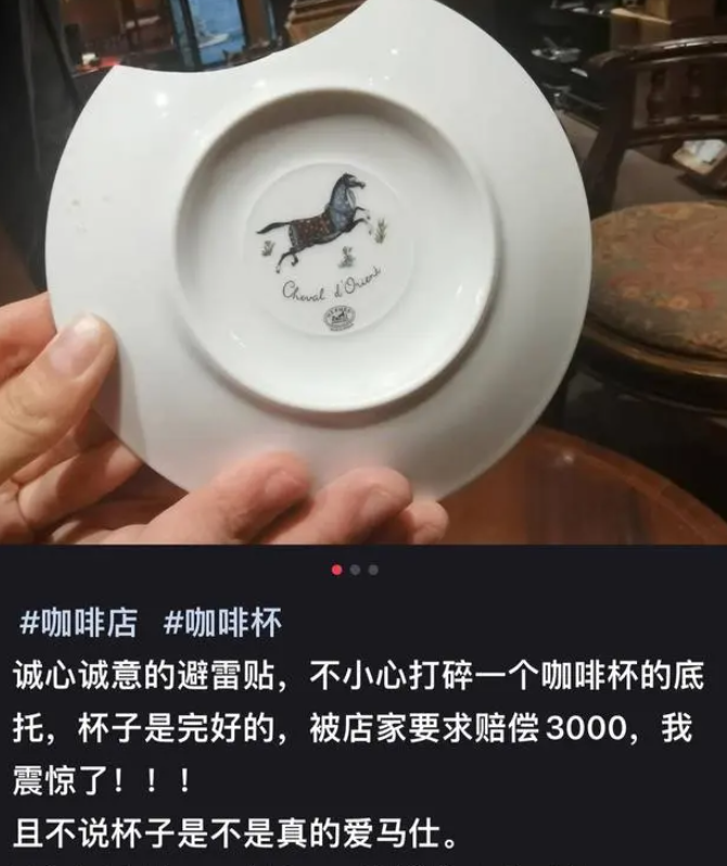 不久前,一位顧客去咖啡館喝咖啡,不小心把底託打了,本以為只是賠個幾十塊,萬萬沒想到服務員張口就是3000塊。