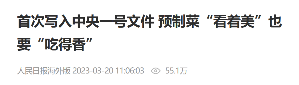第一件事是,官方背書,讓預製菜的存在感越來越強。