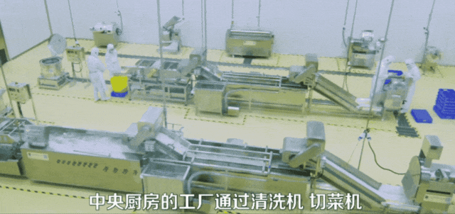 他們的預製是什麼呢?就是一條由清洗機、切菜機、包裝機組成的流水線。