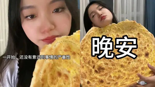 直到鏡頭越拉越遠,拍到饢的全貌,發現它大到能“當被子蓋”。