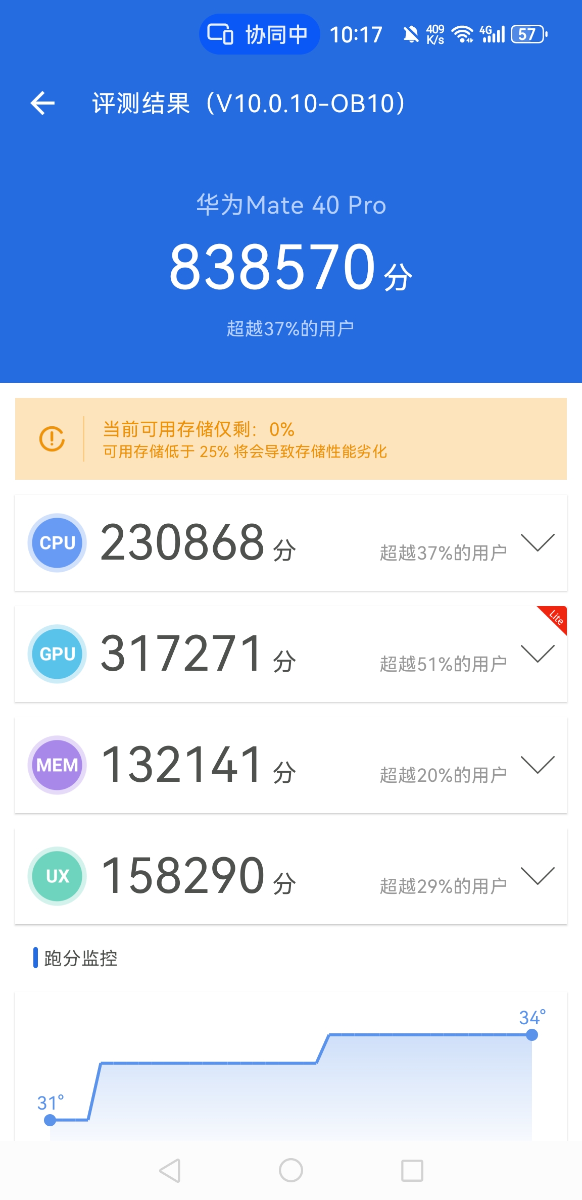 Mate 60的麒麟9000S確實比Mate 40的麒麟9000,分數高一點,但不多。