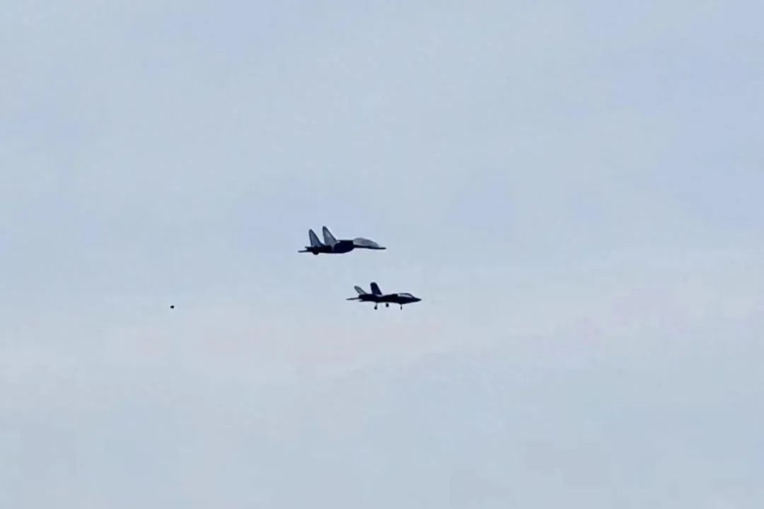 (東北某地上空,網友拍到殲-16伴飛殲-35某架試飛機)