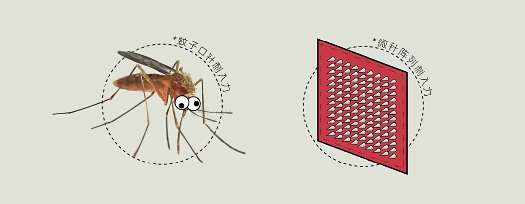 日本科學家神山文男受蚊子 “ 無痛吸血 ” 的啓發,開發出一種極細的注射針頭,直徑只有 60 微米,將多個這樣的微針陣列排布,就實現了藥物的快速輸送。