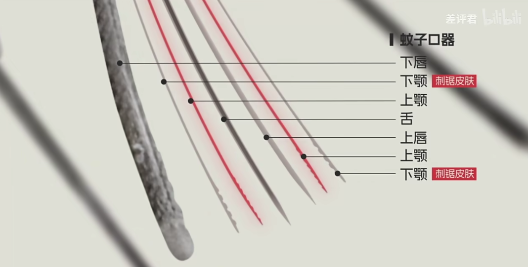 所以蚊子並不是在用一根針咬你,而是用了個 “ 6+1 ” 的配置來吸你的血。