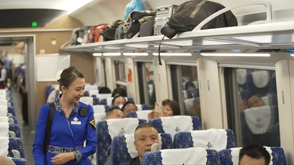 中老鐵路國際列車有“復興號”和“瀾滄號”兩組動車組。其中,“復興號”由中國車隊執乘,“瀾滄號”則由老撾車隊負責。