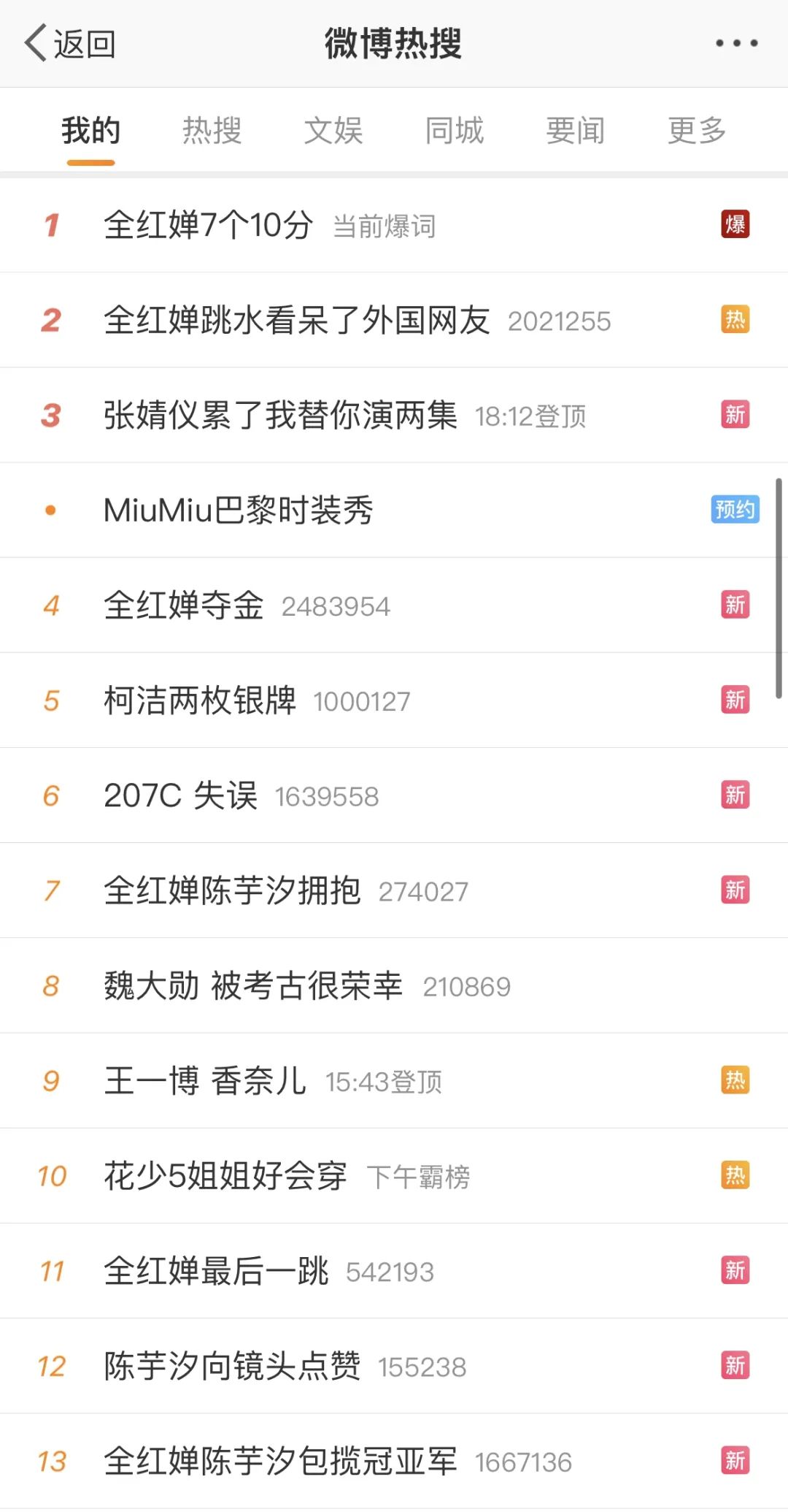 值得一提的是,全紅嬋第二跳407C拿到滿分,7名裁判都打出了10分。#全紅嬋7個10分#隨後衝上熱一。