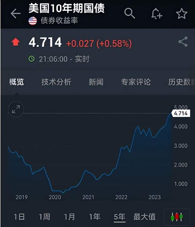 美國10年期國債收益率已經已經從今年3月的3.4%,上漲到4.7%。
