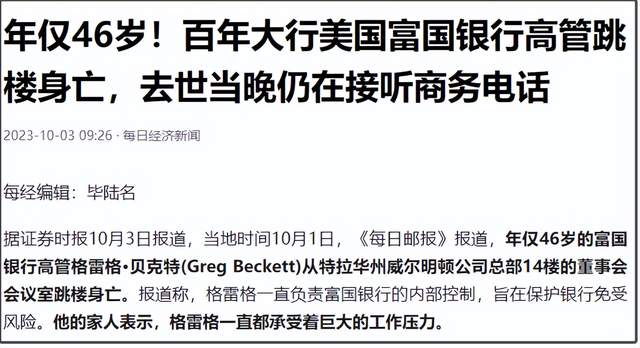 這個時候,《每日郵報》等外媒在這個節骨眼把富國銀行高管年初跳樓的事情又拿出來報道,背後還是有其他問題值得思考。