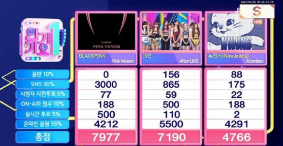 音源方面,根據Melon和Genie音源榜的收聽人數排名公開,防彈少年團的《Butter》以1億7700萬的收聽人數奪冠,IVE的出道曲《ELEVEN》以1億570萬位居次席,第三名是BLACKPINK的《Kill This Love》,1億370萬收聽人數。《ELEVEN》發行於2021年12月初,比《Kill This Love》還晚了將近2年。