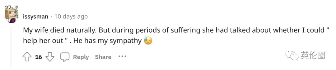 “我的妻子是因病去世的,但她生前曾多次讓我幫她‘解脱’。我同情這個男人。”